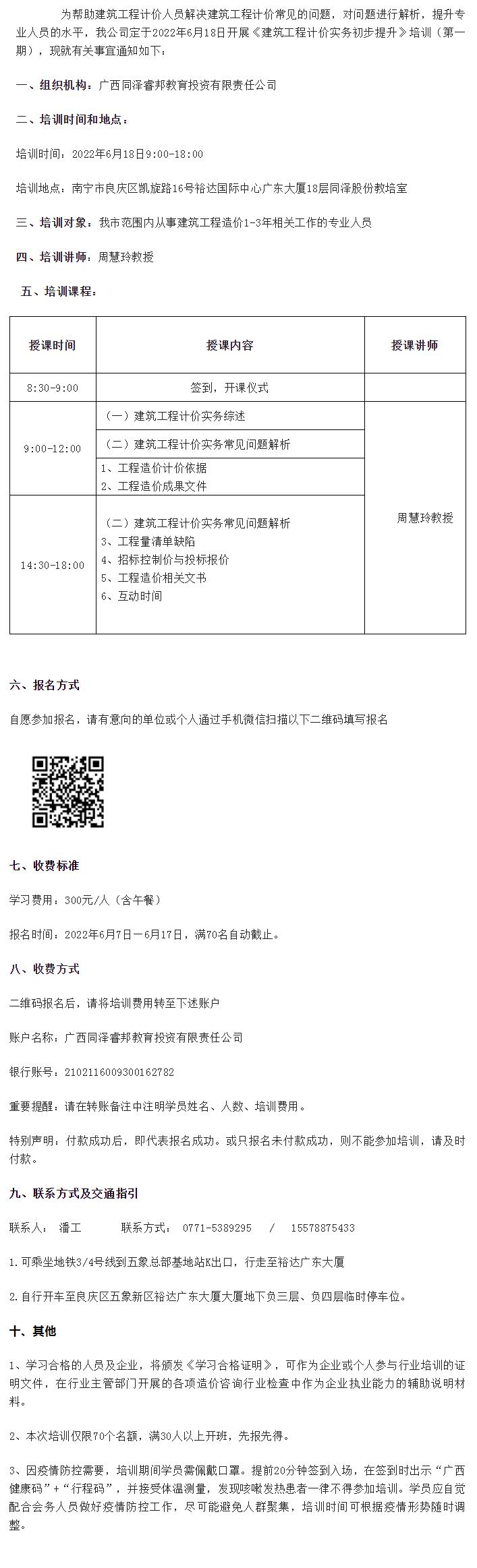 關于舉辦《建筑工程計價實務初步提升》培訓班的通知