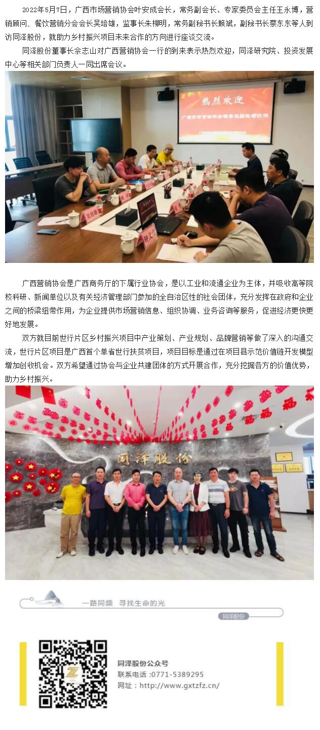 助力鄉(xiāng)村振興,共謀行業(yè)發(fā)展- 廣西市場營銷協(xié)會到訪同澤股份